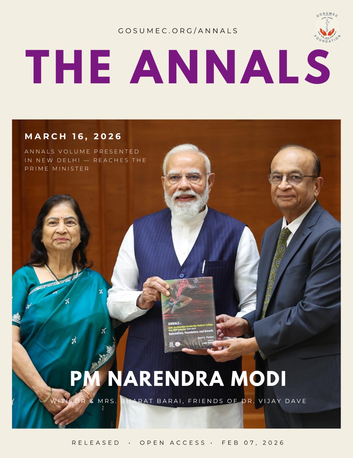 We are honored to share that a copy of the Annals of Seth Gordhandas Sunderdas Medical College & KEM Hospital (1925–2025), authored by the late Dr. Sunil K. Pandya and edited by Dr. Lopa Mehta, was presented to the Honorable Prime Minister of India, Narendra Modi, in New Delhi.